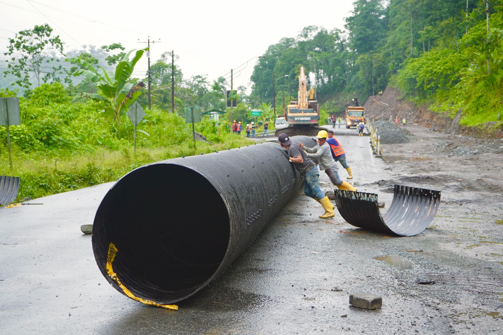 Con cuatro frentes de trabajo se realizó la instalación de cuatro alcantarillas, en los kilómetros 87 y 88 de la vía Alóag-Santo Domingo, tramo Unión del Toachi-KFC, como parte de la ampliación a cuatro carriles que ejecuta la Prefectura de Santo Domingo de los Tsáchilas. Desde las 06:00 de este