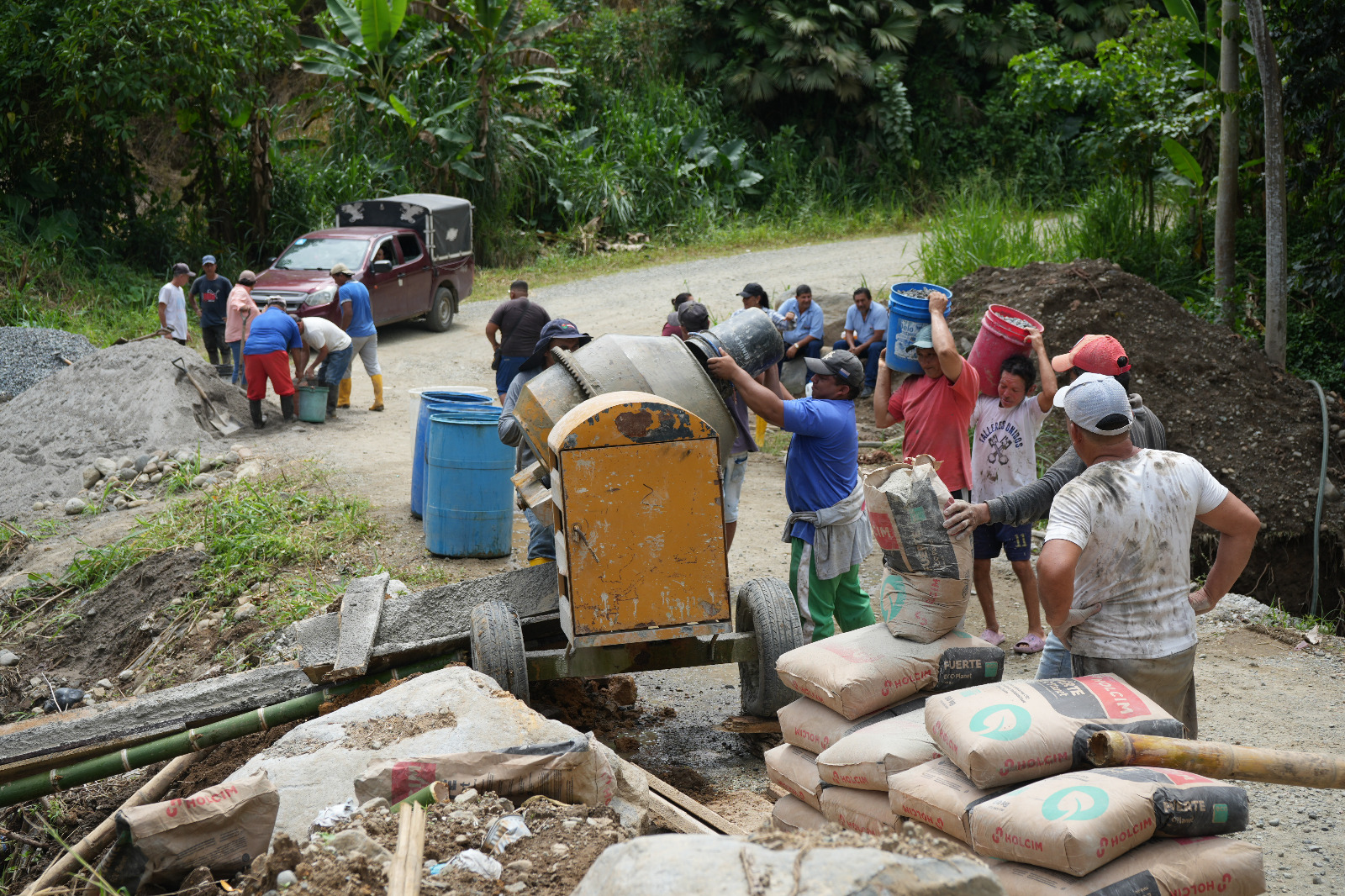 Hombro a hombro trabajamos con habitantes de San Juan en la construcción de una alcantarilla; obra que permitirá la conexión con Umchipe, Copal y 15 de Abril, siendo un paso seguro especialmente en este regreso a clases.