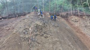 En cuanto a la cuneta de coronación, dijo que esta ya se encuentra trabajando y se está terminando de hacer la descarga hacia la quebrada; mientras que la berma, ubicada en la parte media, está lista en un 90 %.