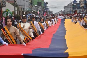 Enseguida, sosteniendo la Bandera Nacional del Ecuador, los mejores estudiantes de la provincia hicieron gala del esfuerzo y dedicación que los llevó a distinguirse como abanderados de las diferentes unidades educativas de la provincia.