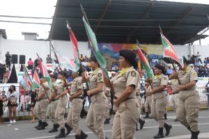 Antecedidos por el pelotón de la Academia Militar Chigüilpe, la Federación de Artesanos de la Provincia se sumó a este acto cívico, del cual también formaron parte el Instituto Especializado de Estética & Belleza (IEBI) y las Brigadas Comunitarias de Seguridad Ciudadana.
