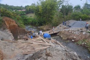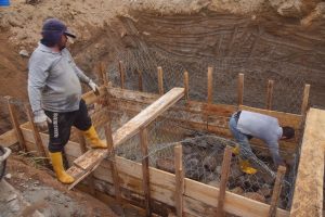PREFECTURA CONSTRUYE MURO DE HORMIGÓN PARA INSTALAR PUENTE METÁLICO, EN PLAN PILOTO