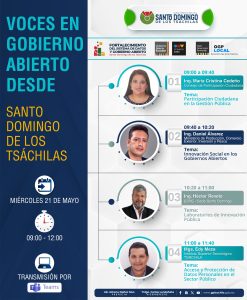 Con el Foro Virtual “Voces en Gobierno Abierto desde Santo Domingo de los Tsáchilas”, a realizarse este miércoles 21 de mayo, la Prefectura forma parte de la Semana de Gobierno Abierto.